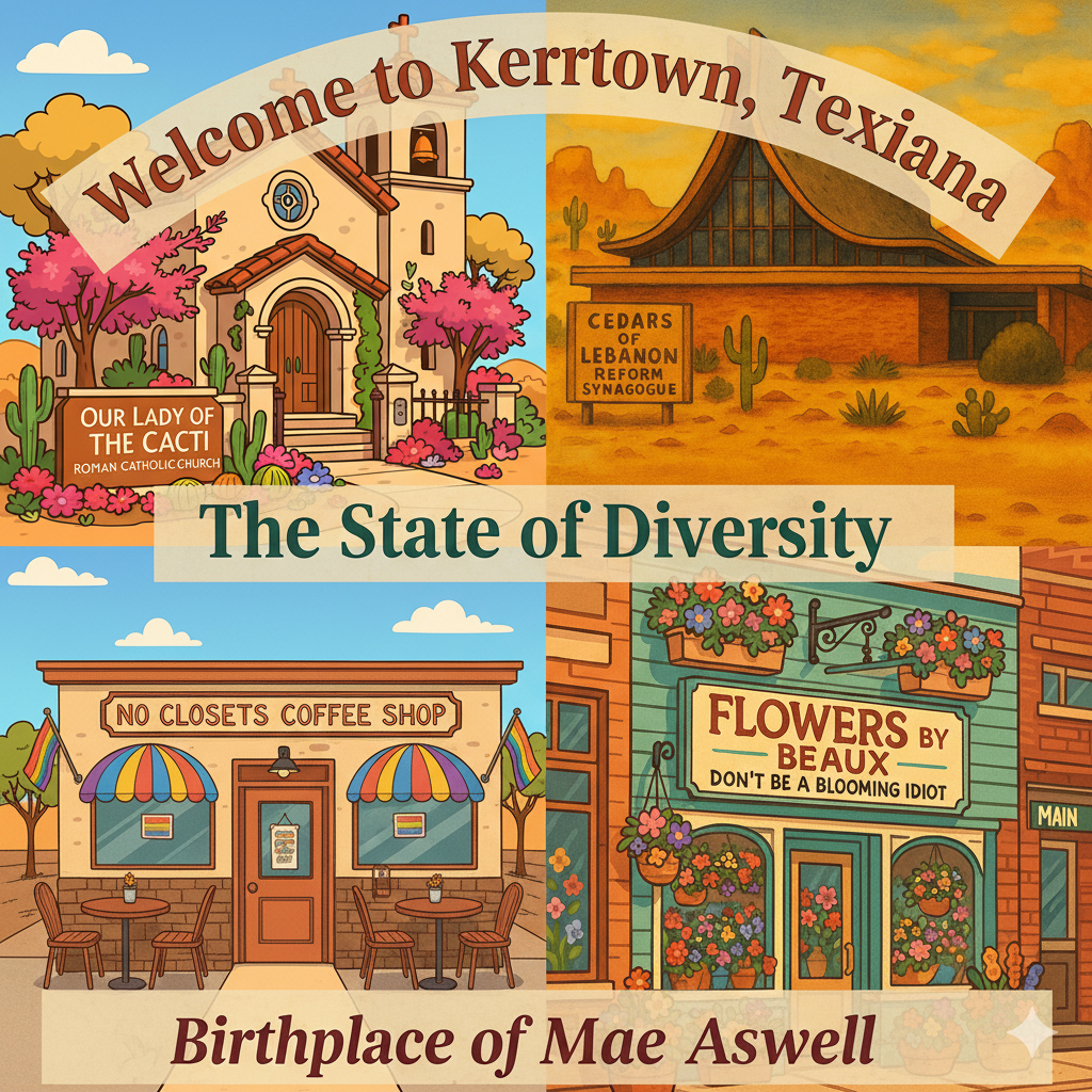 Kerrtown, Texiana, is a fictional town in the southwestern part of the United States. But truth and insight humor are plentiful, nonetheless.